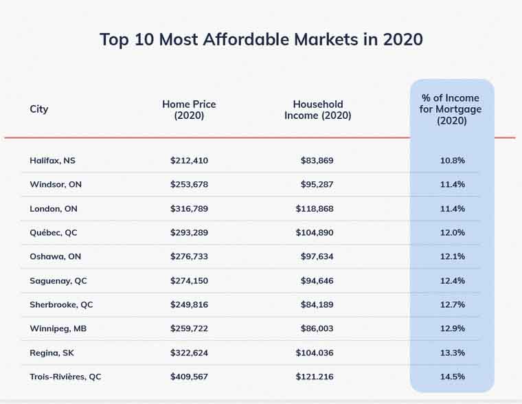 A report by Point2Homes ranked Halifax, Nova Scotia in first place, followed by Windsor, London, and Oshawa in second, third, and fifth place, respectively.